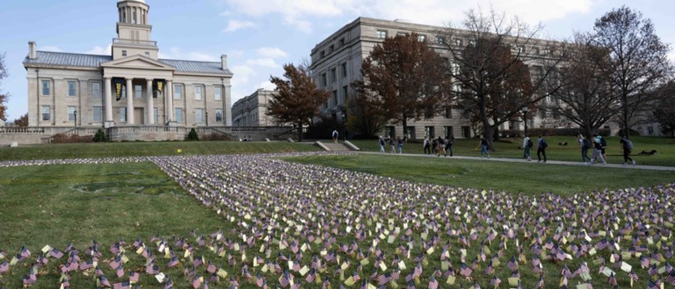 The Veterans Association at IOWA (VAI) together with our campus ROTC will gather to make a flag display using over 6,000 American Flags to form the shape of an I. Each flag is dedicated in honor of a service member. Community members are welcome to come and help our Veteran and military-connected students set-up this awesome display.