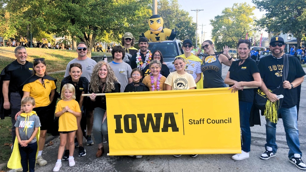 Councilors, family, and friends showed off their Hawkeye pride with the UISC float at the Iowa Homecoming 2025 parade!